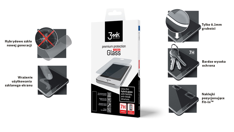 3mk FlexibleGlass to najwyższa ochrona wyświetlacza. Zastosowanie innowacyjnych powłok ceramicznych daje twardość na realnym poziomie 7H. Perfekcyjne dopasowanie i montaż bez bąbelków dopełnia zastosowanie naklejek pozycjonujących Fit-In™.