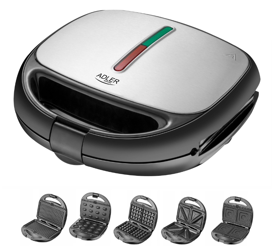 Opiekacz posiada 5 wymiennych płytek, które posłużą jako: