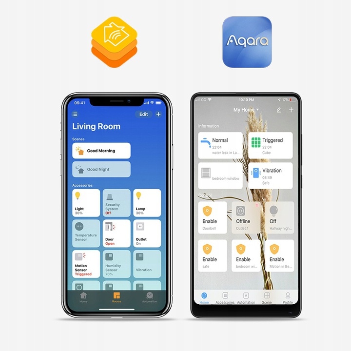 Seria Aqara współpracuje z systemami iOS i Android. Takie rozwiązanie zapewnia kompatybilność z większością smartfonów dostępnych na rynku. Steruj swoim domem z każdego miejsca na ziemi dzięki bardzo przejrzystym i prostym w obsłudze aplikacjom. Z ich pomocą otrzymujesz wgląd w aktualną temperaturę, pobór prądu z podłączonych urządzeń, uzyskasz powiadomienie o uruchomieniu alarmu, otwartych oknach, czy zalaniu. Twój telefon przejmie rolę wielofunkcyjnego pilota którym można sterować każdym podłączonym urządzeniem - włącz światło, dostosuj jego jasność, zaprogramuj automatyczne włączanie/wyłączanie.