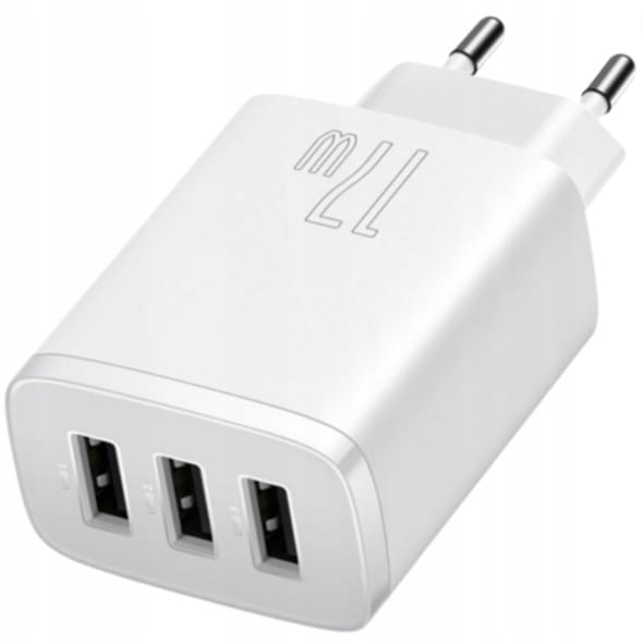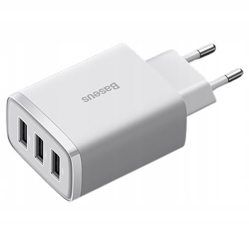 - BASEUS SZYBKA ŁADOWARKA SIECIOWA UNIWERSALNA DO TELEFONU 3x USB MOCNA 17W