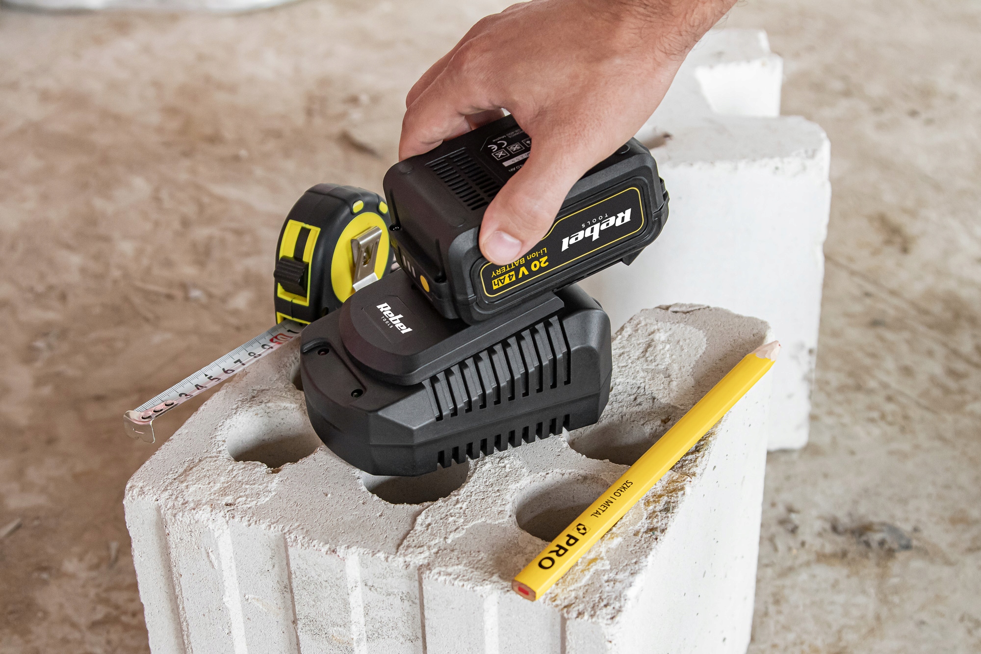 Aby Twoja praca trwała dłużej, bez konieczności robienia przerw na ładowanie baterii, w ofercie Rebel Tools znajdziesz także dedykowany akumulator 20 V, 4 Ah, który skutecznie wydłuży czas pracy wielu urządzeń, np. wiertarko-wkretarki, dmuchawy, nożyc i podkaszarki, a także wyrzynarki i kompresora. Dodatkowy akumulator to doskonały zastępca w czasie, gdy Twoja dołączona do urządzenia bateria właśnie się ładuje. Dzięki niemu możesz jeszcze bardziej zaangażować się w przydomowe prace.