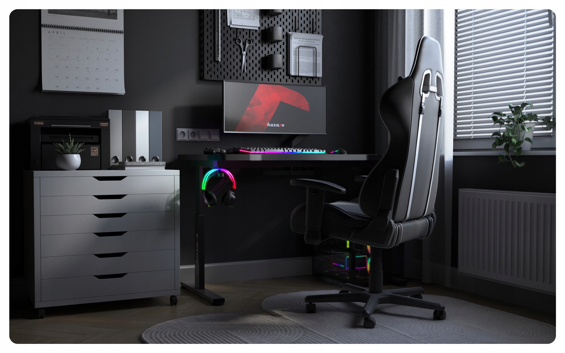 - Biurko Gamingowe z Regulowaną Wysokością HUZARO Hero 2.6 Black + PODKŁADKA