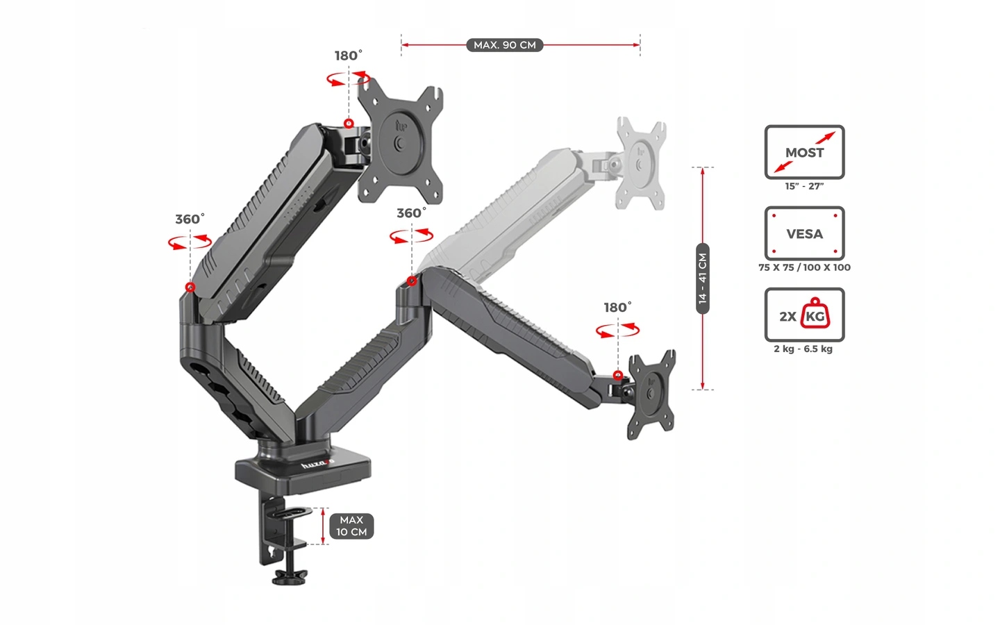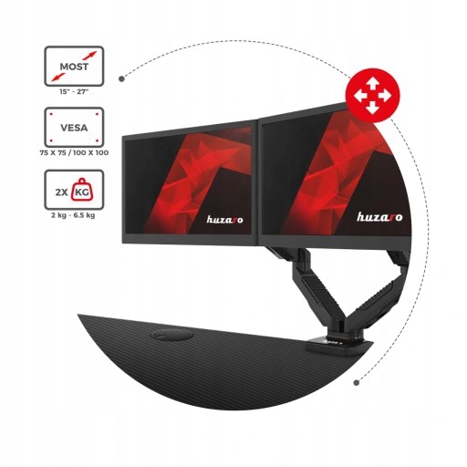 Biurkowy uchwyt obrotowy na dwa monitory Huzaro Motion 2.3