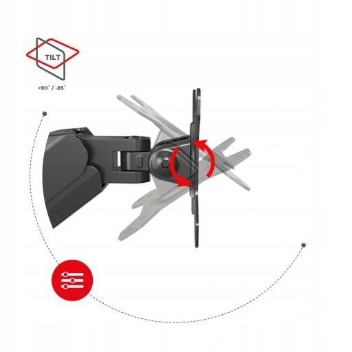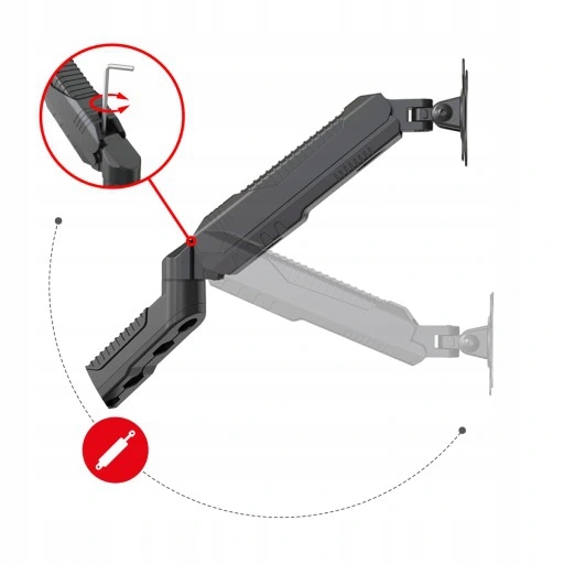 Do regulacji wystarcza dosłownie jeden klucz imbusowy, za którego pomocą zmienia się siłę sprężyny. Regulacja dostosowuje siłę uchwytu do konkretnego monitora i zapewnia stabilne trzymanie, a jednocześnie płynny ruch uchwytu.