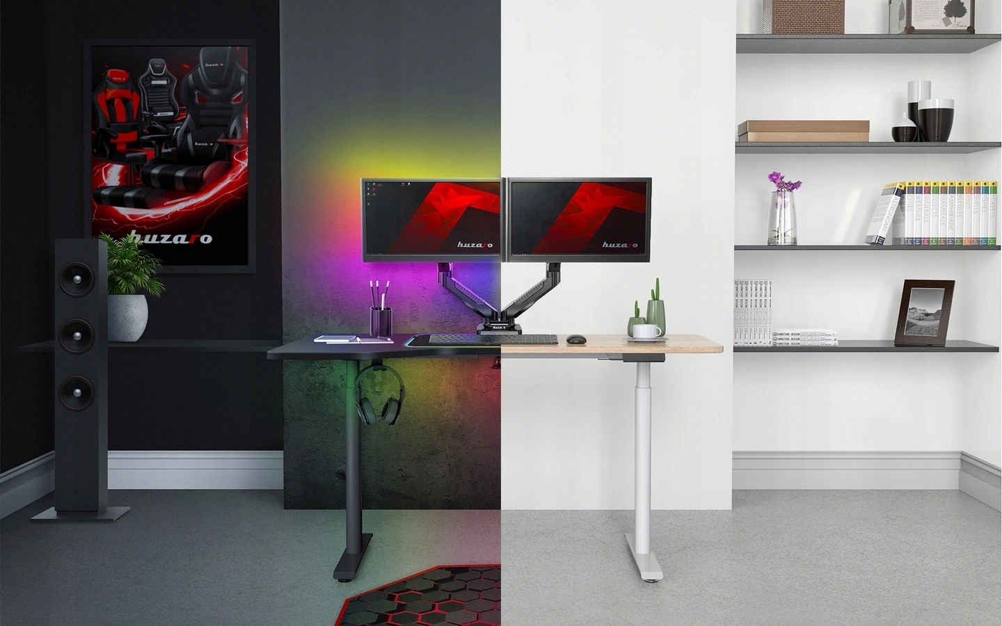 Biurkowy uchwyt obrotowy na dwa monitory Huzaro