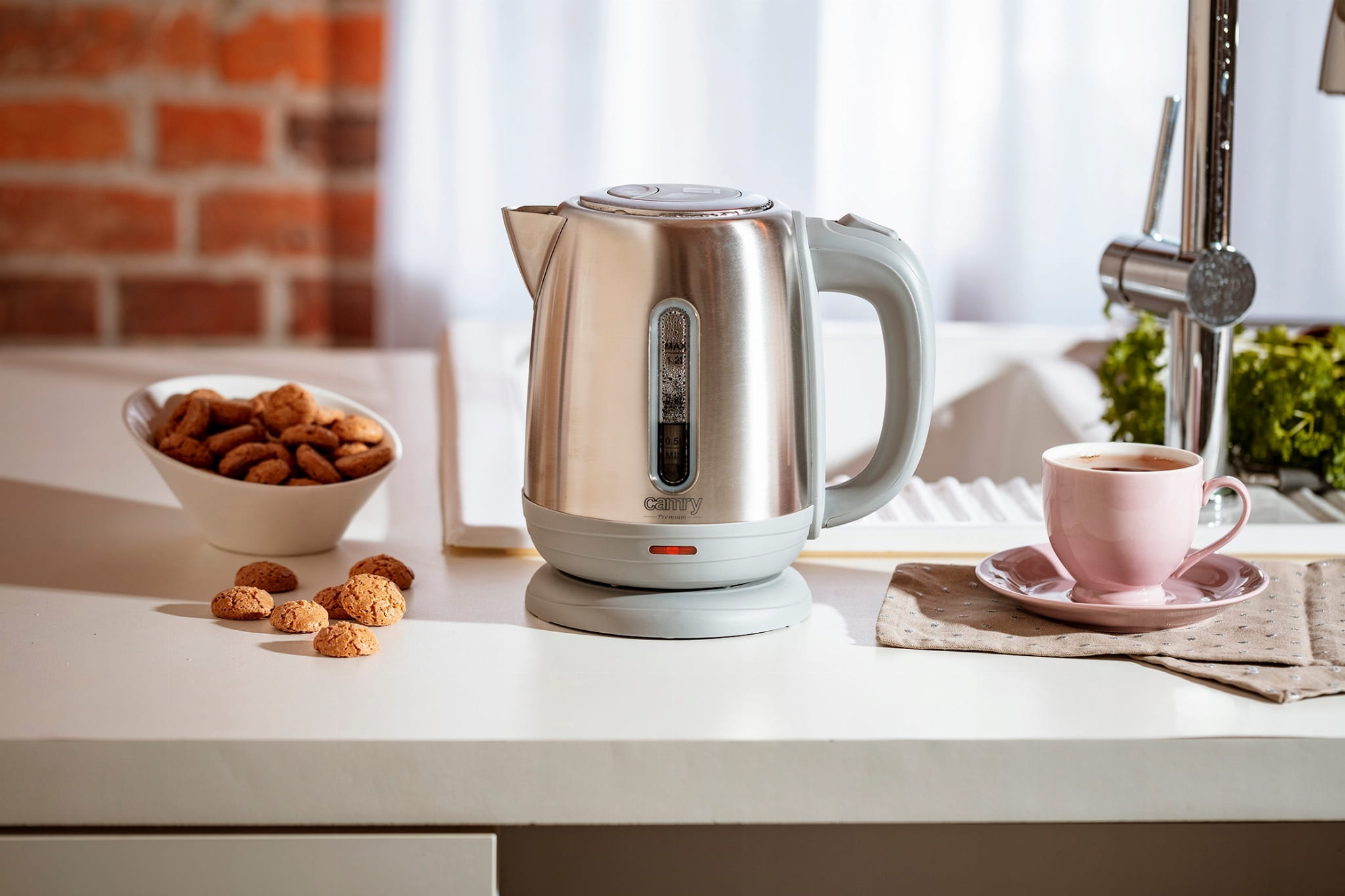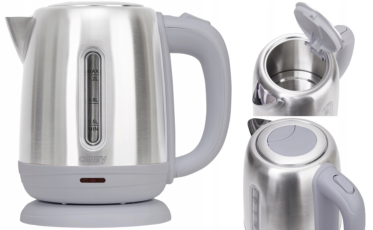 Klasyczny, 1,2-litrowy czajnik elektryczny, przydatny w każdej kuchni, biurze i akademiku. Jego bezpieczeństwo zapewnia blokada uniemożliwiająca włączenie pustego czajnika, oraz automatyczne wyłączenie po zagotowaniu wody. Czajnik wyposażony jest w filtr zatrzymujący osady, który poprawia smak i jakość wody. Funkcjonalność zwiększa stabilna podstawa i czytelny wskaźnik poziomu wody. Dysponuje mocą 1370-1630W i wykonany jest ze stali szlachetnej, co czyni go mistrzowskim rozwiązaniem, jeśli chodzi o szybkie gotowanie wody. O gotowaniu wody informuje za pomocą lampki.