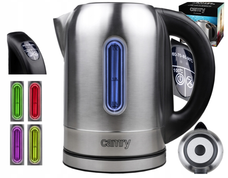 CZAJNIK BEZPRZEWODOWY STAL LED REGULACJA TEMP 2200