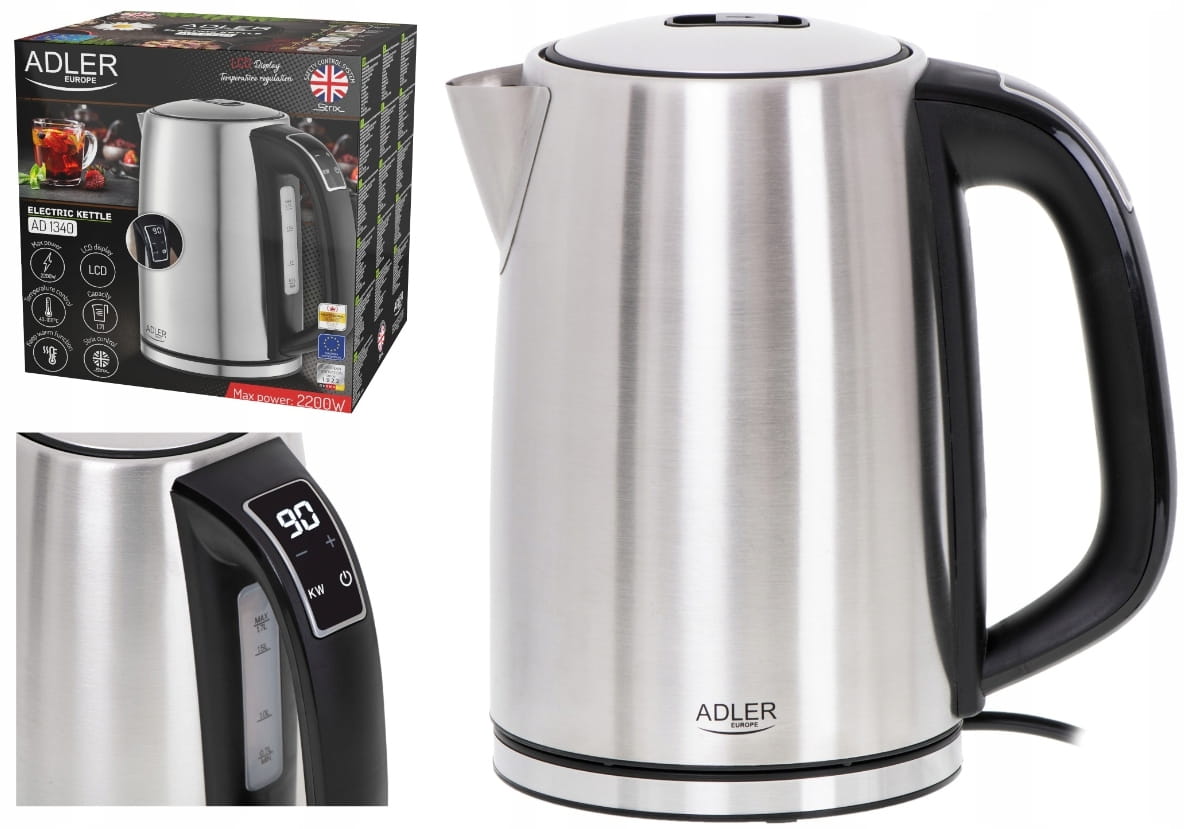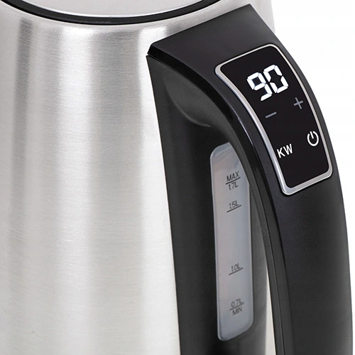 Nowoczesny stalowy czajnik z wyświetlaczem temperatury LCD i 7 stopniową regulacją temperatury oraz funkcją podtrzymania temperatury. W trybie gotowania wody do jednej z możliwych temperatur od 40°C do 100°C wyświetlacz LCD wskazuje aktualną temperaturę wody gotując do pożądanej wartości. W trybie podtrzymania temperatury wyświetlacz LCD wskazuje stale ustawiony poziom temperatury, którą urządzenie utrzymuje podgrzewając wodę cyklicznie przez 2 godziny. Sygnał dźwiękowy przy uruchamianiu i po zagotowaniu wody przypomina o zalaniu wodą ulubionego napoju. Bezpieczeństwo użytkowania zapewnia blokada uniemożliwiająca włączenie pustego czajnika, automatyczne wyłączenie po zagotowaniu wody oraz system kontroli bezpieczeństwa STRIX.