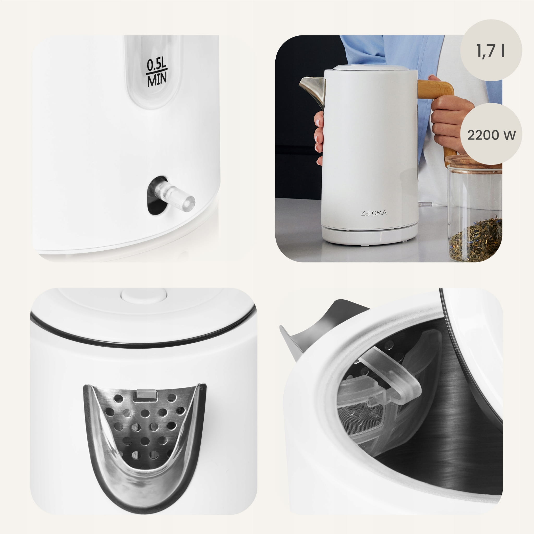 - CZAJNIK ELEKTRYCZNY 2200W SZYBKO NAGRZEWA WODĘ BIAŁY 1,7L STAL NIERDZEWNA