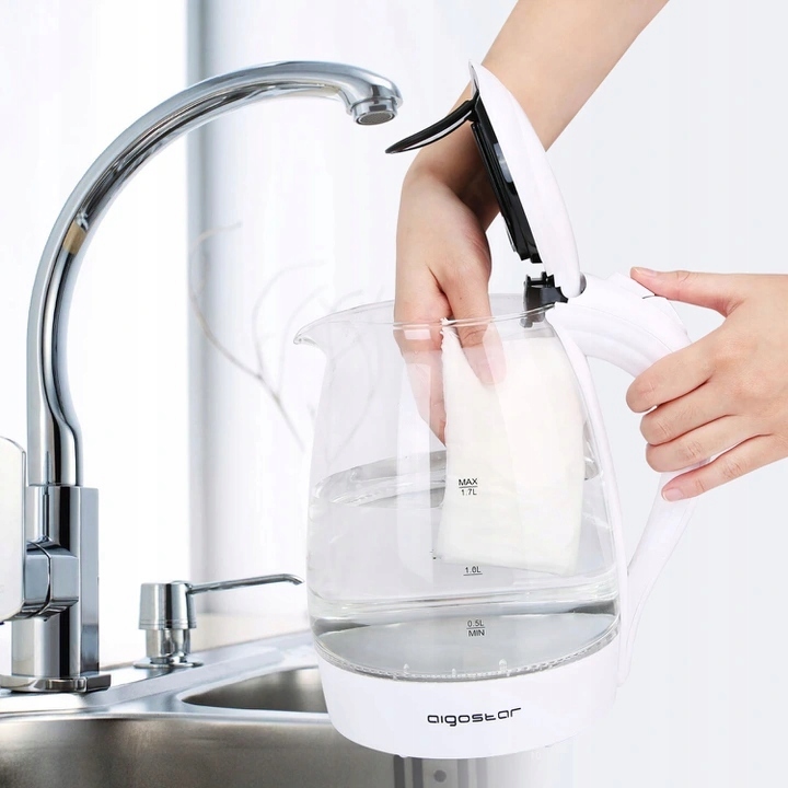 Ukryty element grzewczy wykonany ze stali nierdzewnej 304, łatwy do czyszczenia, wysokiej jakości szkło borokrzemowe odporne na wysoką temperaturę i niepochłaniające smaku i zapachu. Zabezpieczenie przed przegrzaniem, zabezpieczenie przed włączeniem pustego czajnika, automatyczne wyłączanie, antypoślizgowy uchwyt.