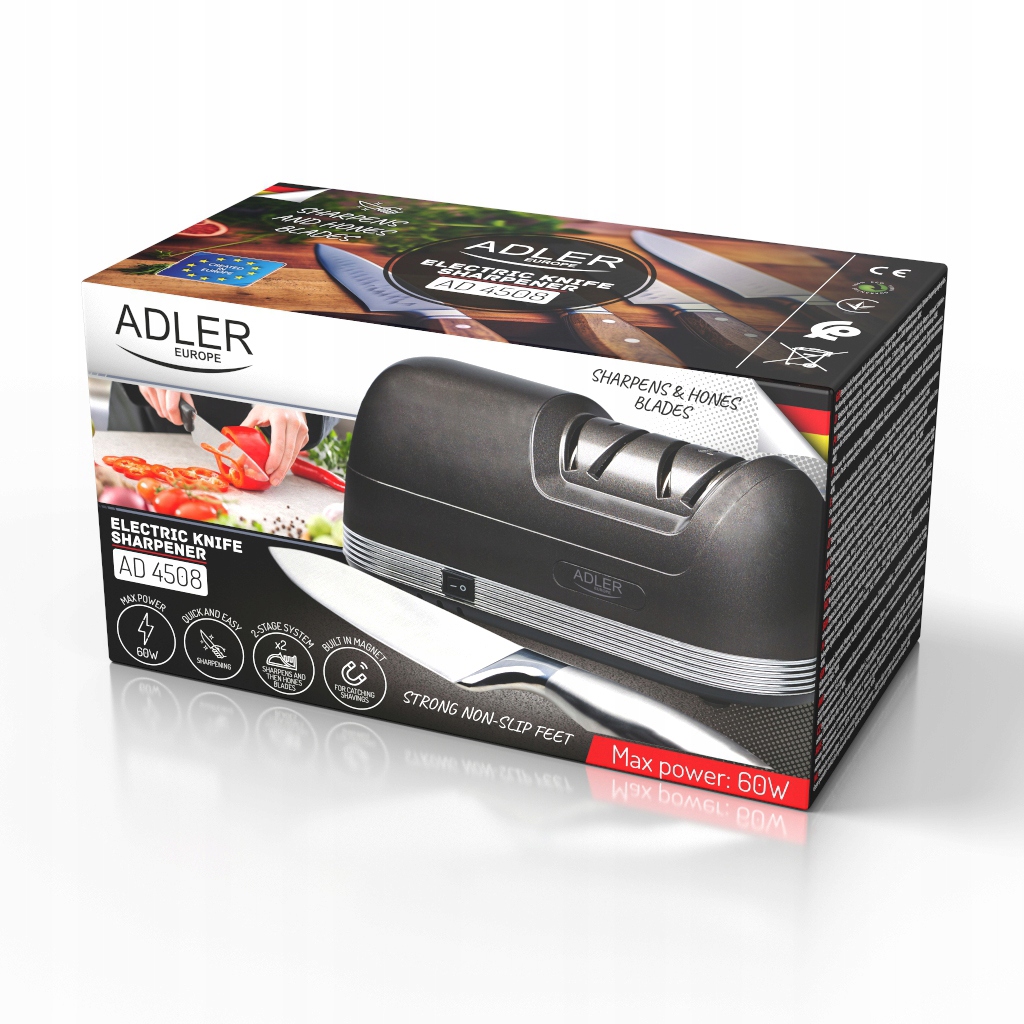 Adler AD 4508 to innowacyjna elektryczną ostrzałkę do noży, która zapewni Twoim nożom perfekcyjną ostrość w ciągu kilku sekund.