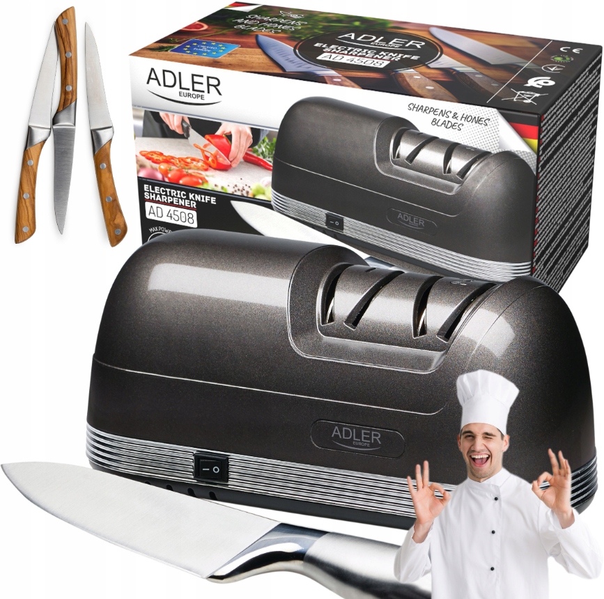 - Szybkie i Łatwe Ostrzenie: Dzięki Adler AD 4508 przywrócenie ostrości Twoim nożom jest szybkie i bezproblemowe. Proces ostrzenia nie wymaga specjalistycznej wiedzy ani umiejętności, co sprawia, że jest idealny dla każdego użytkownika.