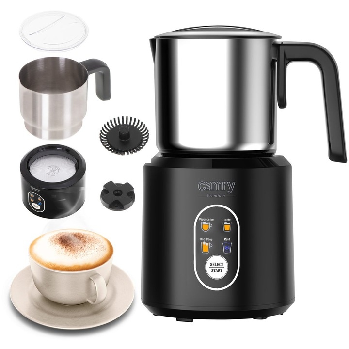 Powłoka ze stali nierdzewnej nie tylko wpływa na elegancki wygląd spieniacza, ale sprawia też, że jest on trwały i odporny na uszkodzenia mechaniczne np. zadrapania. Podświetlany przełącznik pozwala szybko wybrać cappuccino, latte, gorącą czekoladę lub zimną pianę. Bezprzewodowy kubek i płyta grzewcza w podstawie ułatwiają wygodne manewrowanie i przelewanie mleka oraz piany. Magnetyczne mieszadło jest długotrwałe, a automatyczne wyłączenie i obsługa jednym przyciskiem sprawiają, że jest to proste w obsłudze urządzenie. Przezroczysta przykrywa z uszczelką chroni przed chlapaniem i pozwala obserwować proces spieniania mleka.