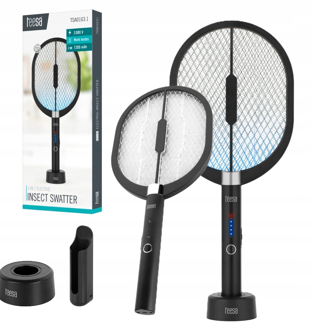 Elektryczna łapka na muchy owady 3w1 Teesa TSA0163 podświetlenie rakieta