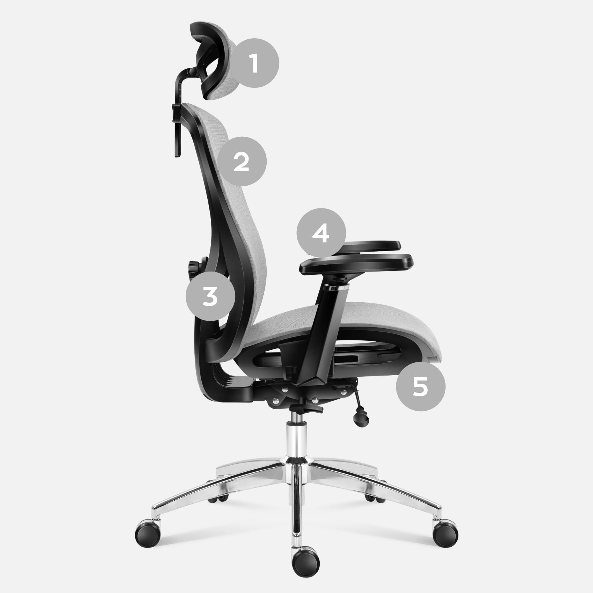 Dopełnieniem funkcjonalności fotela jest regulowany zagłówek, który zapewnia odpowiednie wsparcie dla szyi i głowy.