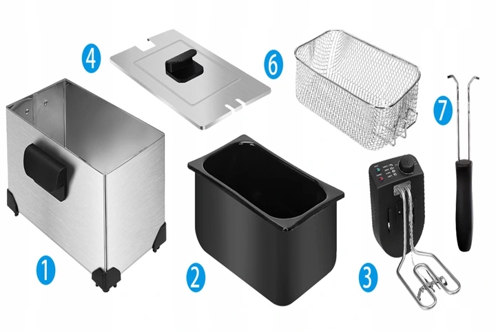 Korpus ze stali nierdzewnej, odporny na rdzę i trwały. Ładny wygląd i wysoka jakość, najlepszy wybór frytkownicy do kuchni. Ta frytkownica jest łatwa w użyciu, możesz samodzielnie przygotować różne rodzaje potraw w profesjonalny sposób.