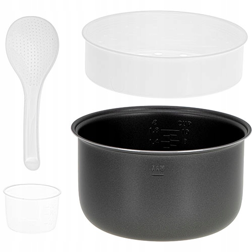 - Koszyk do gotowania na parze, miarka i łyżka. Wygodne rozwiązanie do gotowania i serwowania.