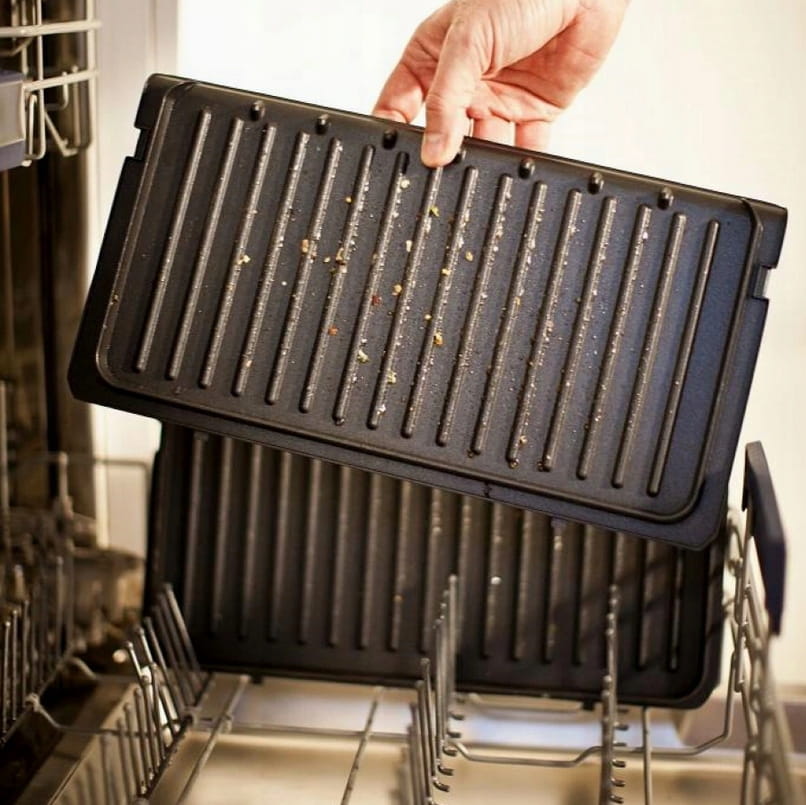 Grill wyposażony został w odłączane płyty grzewcze zamiast rusztu, dzięki czemu resztki oleju nie kapią na grzałkę co ułatwia czyszczenie i konserwację urządzenia.