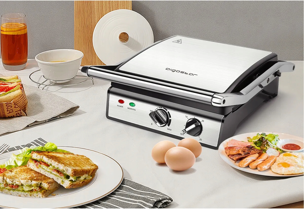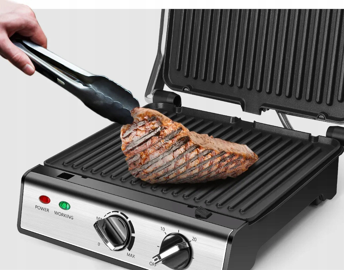 Elektryczny grill jest wielofunkcyjny, pozwalając na przygotowywanie panini, deserów, steków, grillowanie i inne proste formy przyrządzania smakołyków.