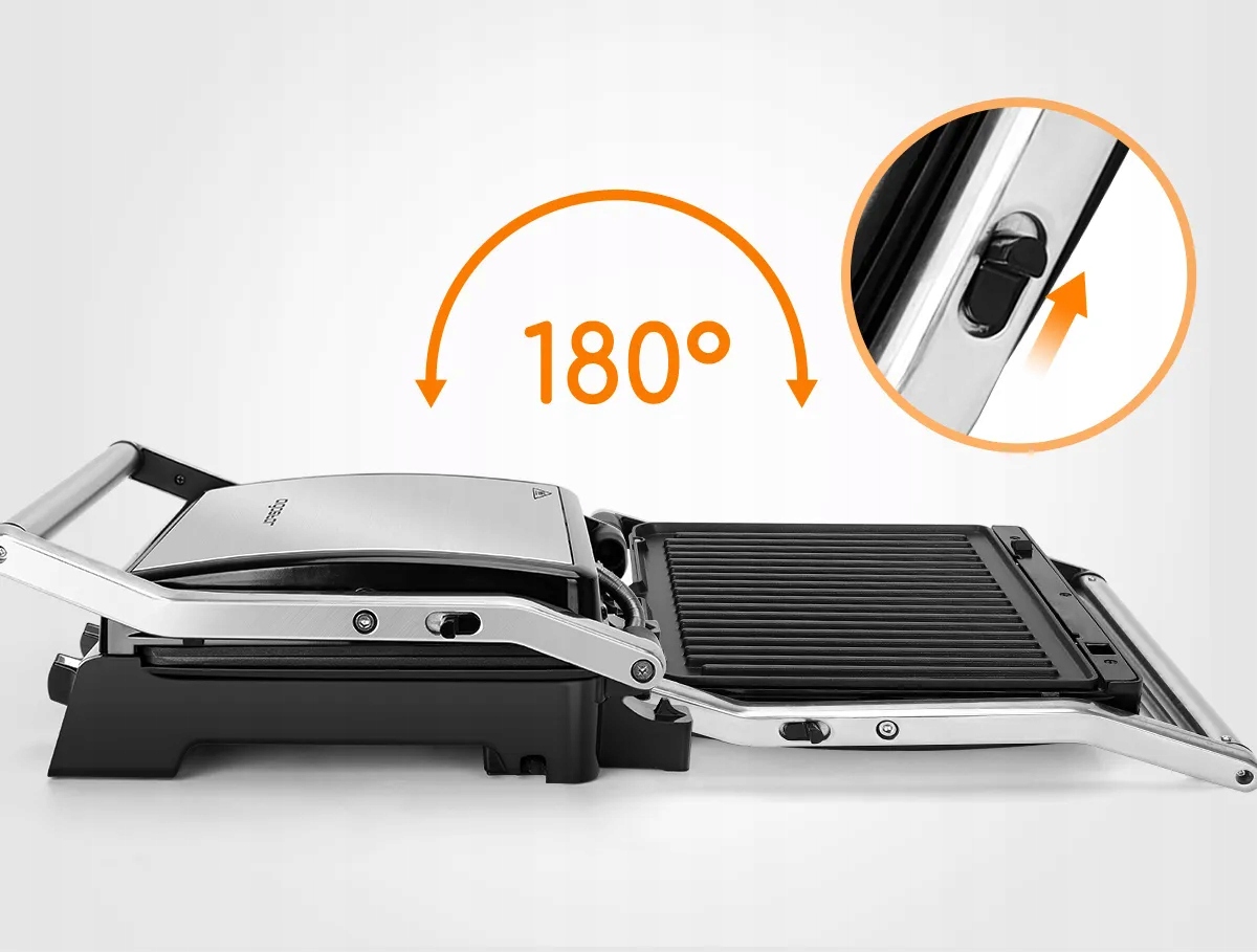 Płyty grillowe górną i dolną można ustawić poziomo, a także połączyć w jedną dużą płytę do grillowania, co rozszerza powierzchnię grilla. Spełnia codzienne wymagania i jest wygodny do przechowywania w domu.