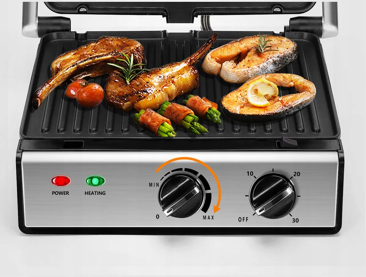 GRILL OPIEKACZ ELEKTRYCZNY ROZKŁADANY 2000W TIMER