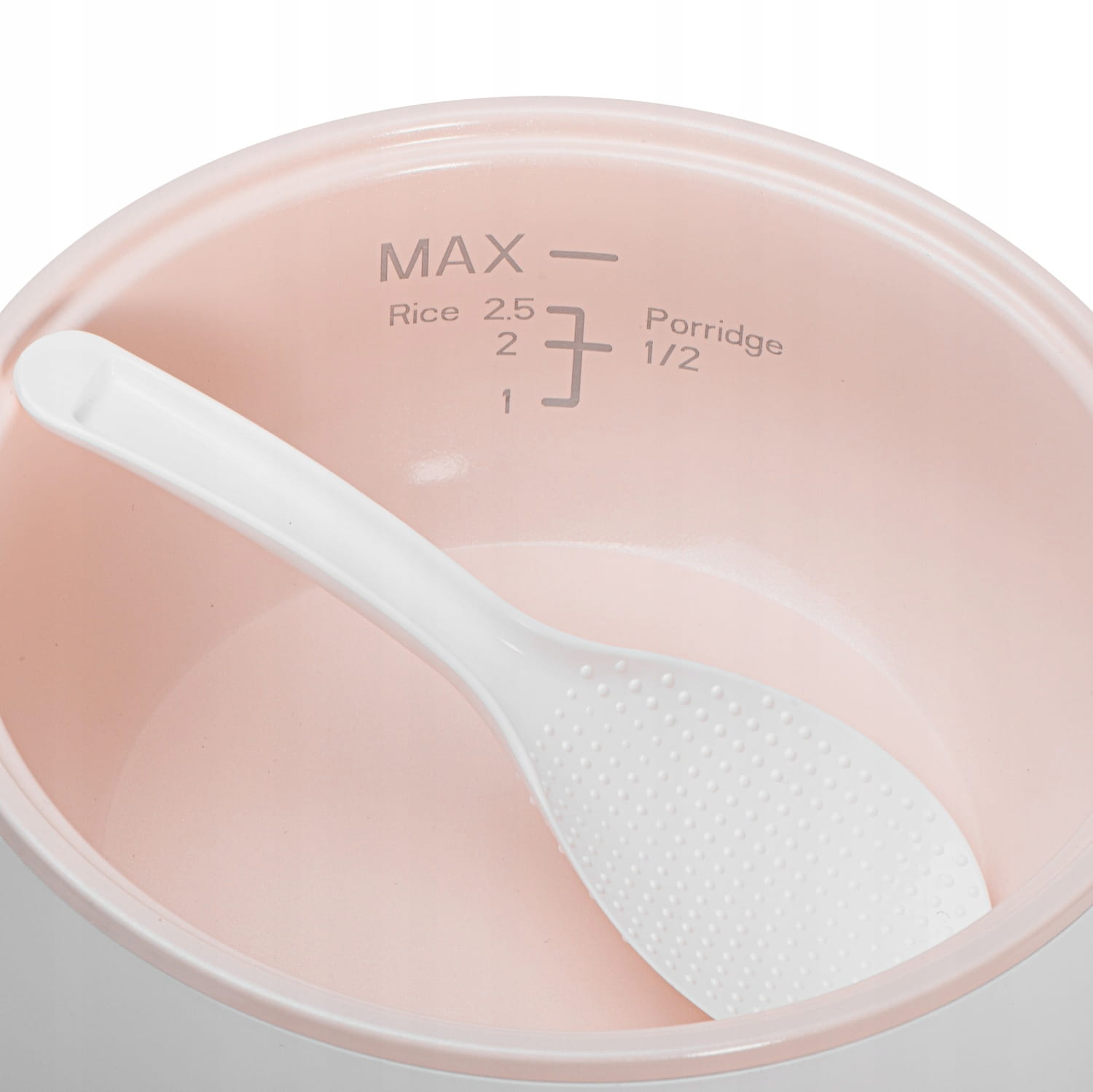 Wnętrze garnka pokryte zostało nieprzywierającą powłoką bezpieczną dla żywności, co pozwala przygotowywać potrawy bez ryzyka przypalania i znacząco ułatwia czyszczenie. Okrągły element grzejny zapewnia równomierne rozprowadzanie ciepła, dzięki czemu dania są zawsze idealnie ugotowane.