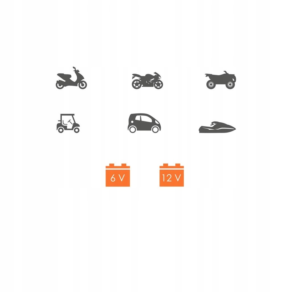 Ładowarka obsługuje wszystkie najpopularniejsze typy akumulatorów ołowiowych: LEAD-ACID, WET, GEL, AGM, SLA, VRLA, EFB i ECM, o pojemności od 2 Ah do 40 Ah.