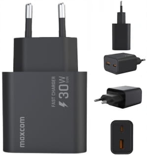 ?️ Ładowarka Maxcom 30W USB A+C szybka PD3.0 QC3.0 uniwersalna czarna kod ŁAD 30W USB A+C