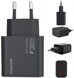 Ładowarka Maxcom 30W USB A+C szybka PD3.0 QC3.0 uniwersalna czarna