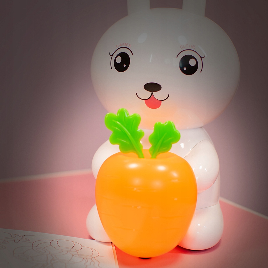 Poznaj lampkę LED Charlie w kształcie uroczego królika, który wniesie do pokoju Twojego dziecka odrobinę magii. Włącznik na nosie i dotykowe przyciski na oczach sprawiają, że obsługa lampki staje się prawdziwą zabawą. Dwie lampki umieszczone na uszach królika zapewniają podwójną moc świecenia, rozjaśniając każdy kąt pokoju i tworząc przytulną atmosferę do zabawy i nauki. O zdrowie oczu Twojej pociechy zadba płynna regulacja barwy i natężenia światła.