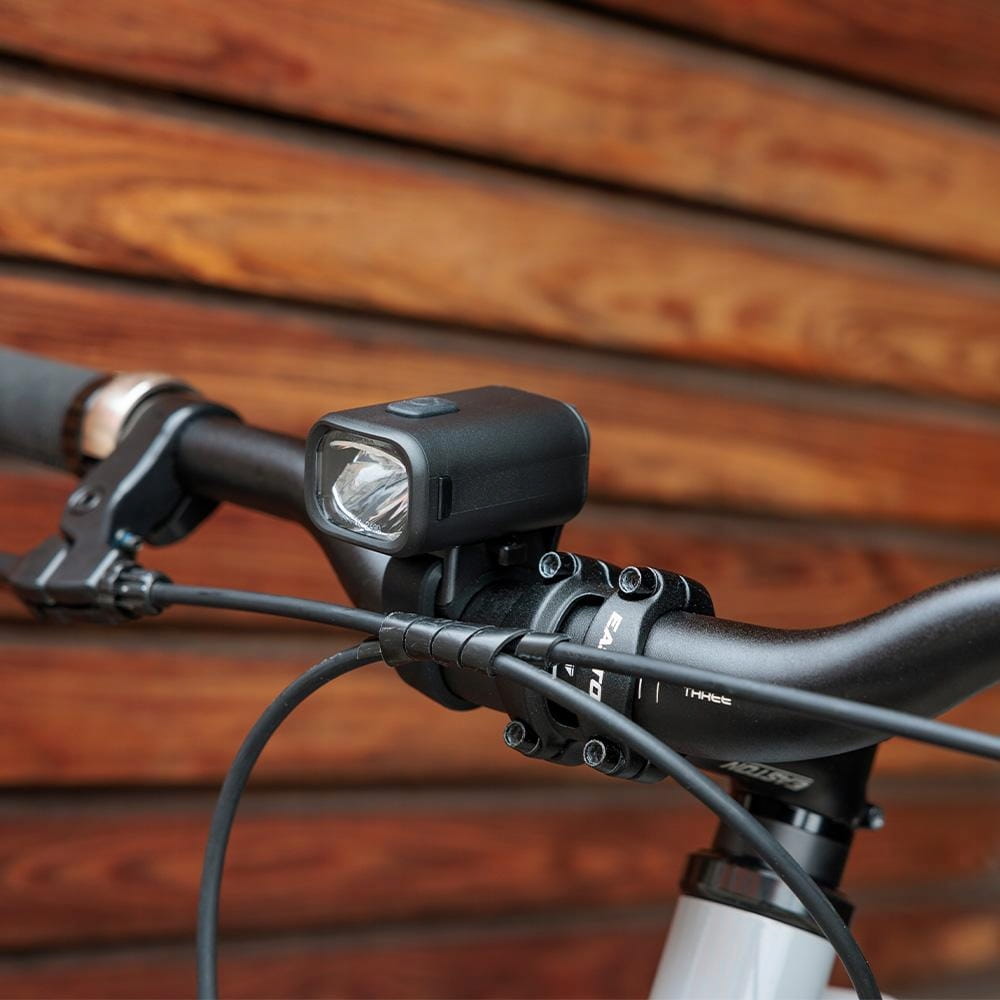 Lampka rowerowa przednia LED BLF1 50lux czarna trzy poziomy mocy świecenia