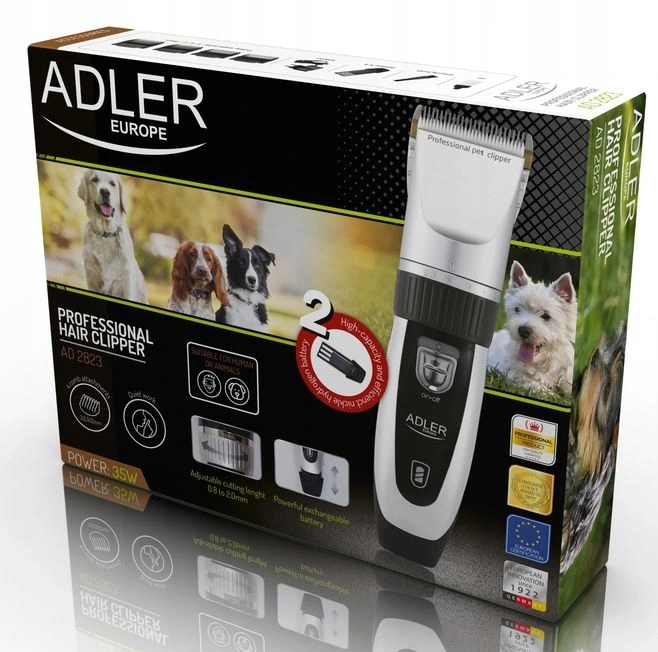 ADLER AD 2823 - strzyżarka dla zwierząt to model dla osób wymagających od urządzeń solidności i niezawodności, dbających o swoje zwierzęta. Strzyżarka została wyposażona w wytrzymałą, tytanową głowicę, która zapewnia bezawaryjną pracę. Wykorzystanie ostrza ceramicznego - znacznie lepszej jakości niż ostrza metalowe - pozwala na szybkie i dokładne strzyżenie. Dodatkowo strzyżarka umożliwia regulację długości strzyżenia, dzięki czterem funkcjonalnym nasadkom oraz precyzyjnej regulacji w pierścieniu. Wygodną i cichą prace zapewnia wysokoobrotowy wydajny silnik o mocy aż 35W.