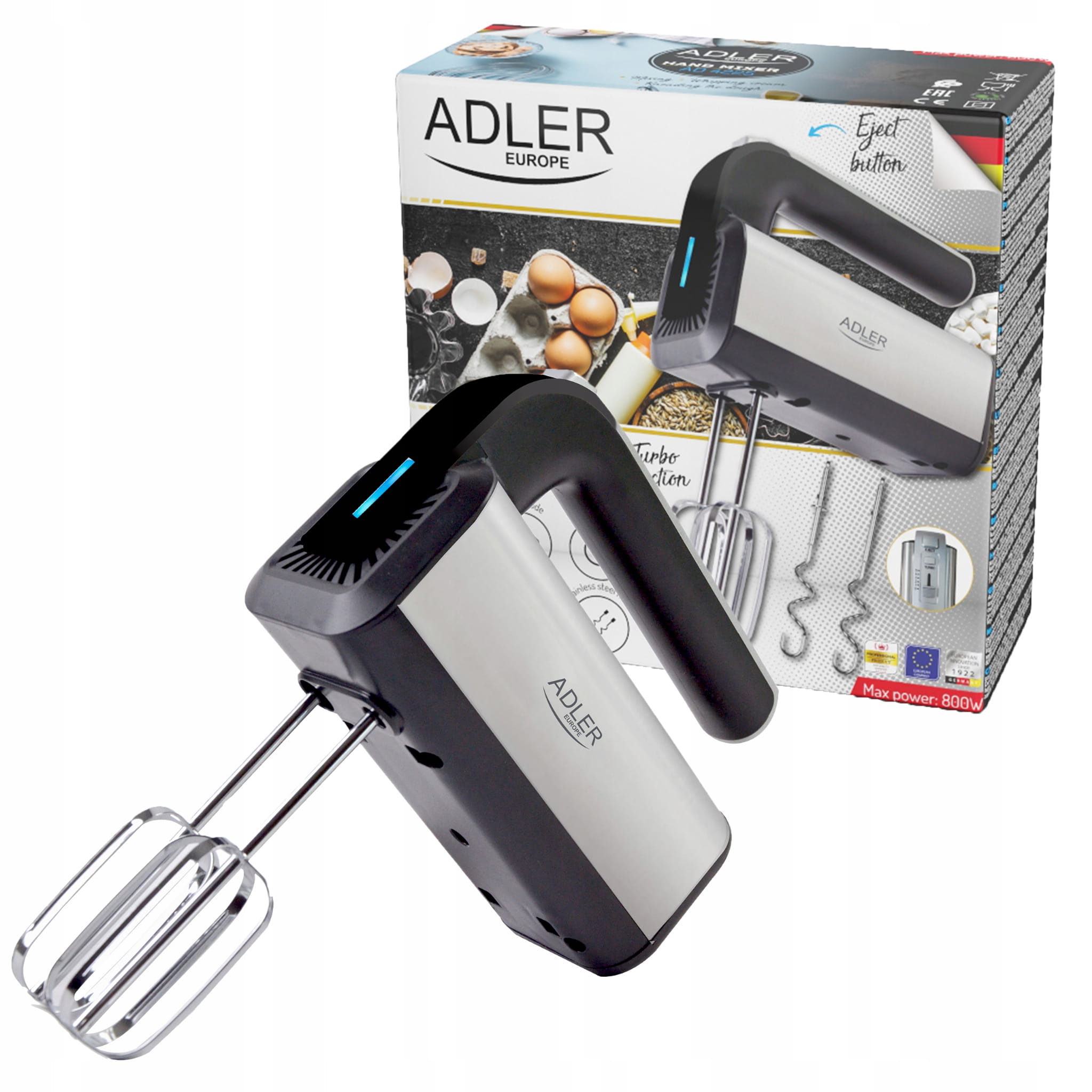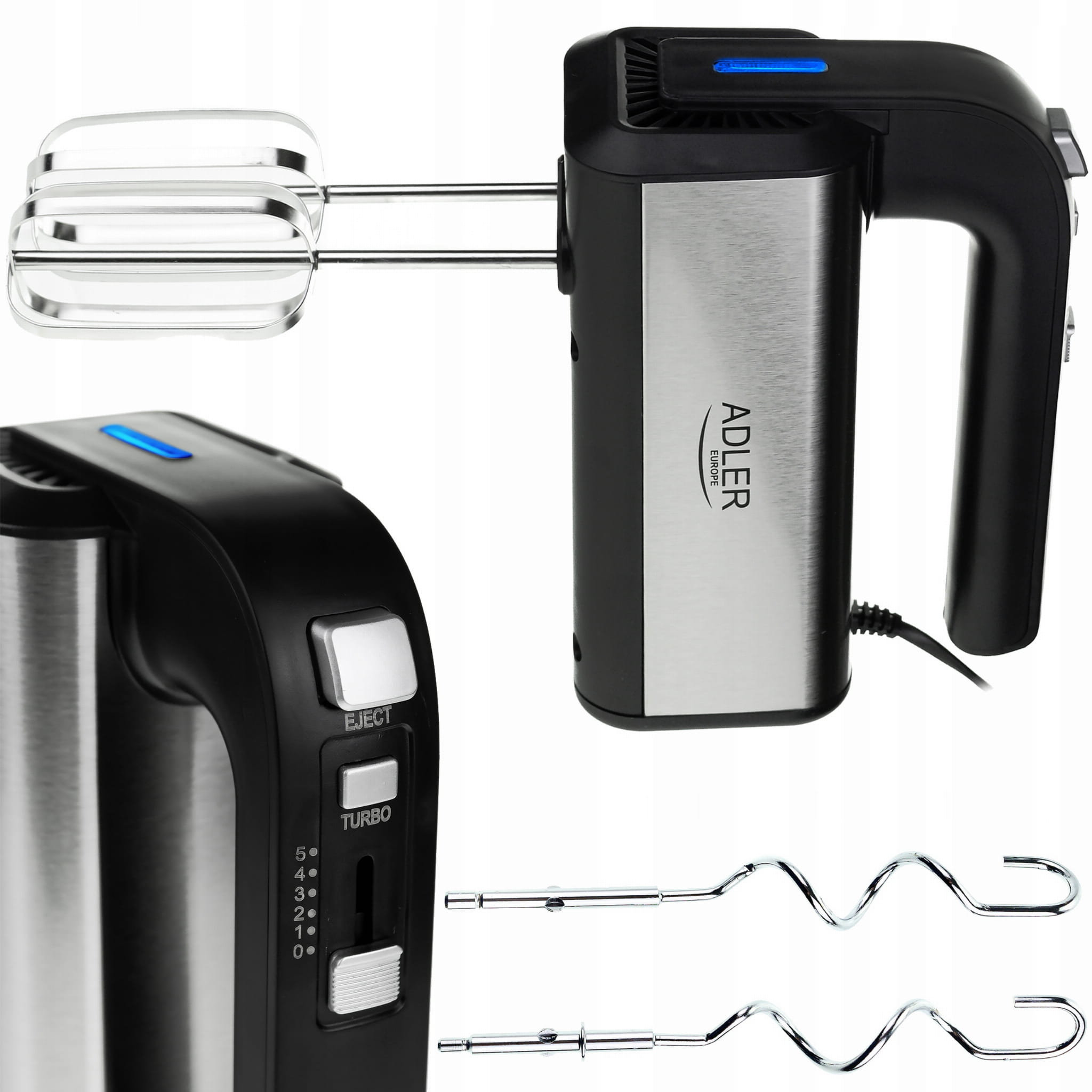 MIKSER RĘCZNY MOCNY ROBOT KUCHENNY AD4225 TURBO 5 BIEG 800W STAL NIERDZEWNA