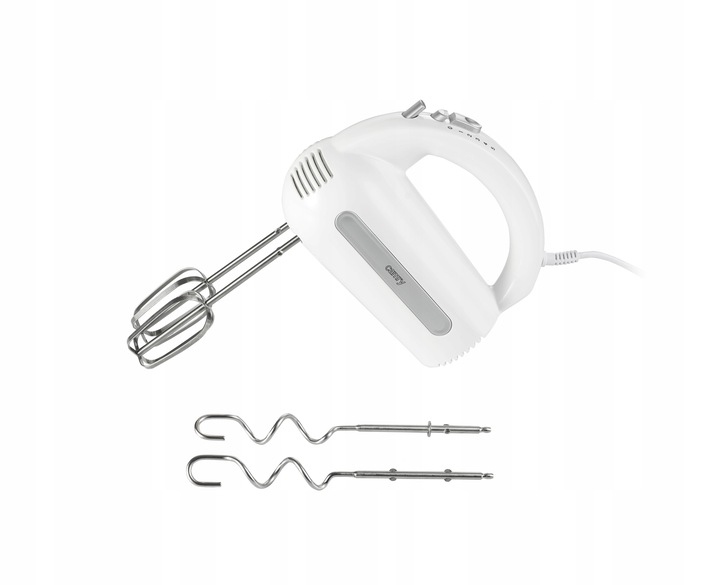 Trzeba przyznać, że domowe wypieki są o wiele zdrowsze niż te ze sklepu i nie ma nic przyjemniejszego niż zapach pieczonego ciasta roznoszący się po całym mieszkaniu! Do jego przygotowania potrzeba nam zazwyczaj dużej ilości naczyń i sztućców, ale można sobie ułatwić przygotowywanie ulubionych ciast i ciasteczek! Oferowany przez nas mikser to urządzenie, które będzie dobrze prezentować się w każdej kuchni. Biała obudowa oraz mieszadła i trzepaki ze stali nierdzewnej są też łatwe w utrzymaniu czystości. Obudowę wystarczy przetrzeć wilgotną szmatką, a następnie wytrzeć do sucha. Mieszadła można myć w wodzie z dodatkiem płynu do mycia naczyń. To, że w zestawie są dwa typy mieszadeł ułatwi nie tylko ubijanie piany na bezy, ale i pomoże zagnieść kruche ciasto! Mikser pozwala na pracę przy wykorzystaniu aż pięciu różnych prędkości, dzięki czemu można wykorzystać go do ubijania kremów, piany z białek lub bitej śmietany, ale również do mieszania suchych składników potrzebnych na przykład do przygotowania chleba.