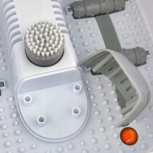 Urządzenie do masażu stóp z uchwytem do przenoszenia można wykorzystać w domowym, jak i profesjonalnym spa. Należy pamiętać, że przydaje się również w zabiegach zdrowotnych! Dzięki 4 rolkom do masażu punktów refleksyjnych oraz 3 wymiennym nakładkom masującym, a także dyszom powietrznym, które wytwarzają bąbelki można wybrać: masaż wibracyjny i bąbelkowy w chłodnej wodzie, masaż wibracyjny i bąbelkowy w ciepłej wodzie lub masaż promieniami podczerwieni. Urządzenie wyposażone jest też w oparcie na stopy z wypustkami masującymi, które dodatkowo pomaga nam się zrelaksować. Do tego należy wymienić bezpieczne, antypoślizgowe nóżki, które z pewnością przydają się przy pracy z wodą. Dzięki nim urządzenie nie przesunie się na śliskiej podłodze.