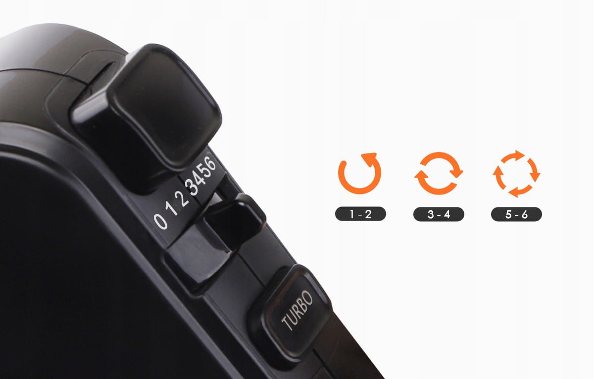 Osobny przycisk "turbo" uruchamia najwyższą prędkość podczas mieszania na niskiej prędkości.