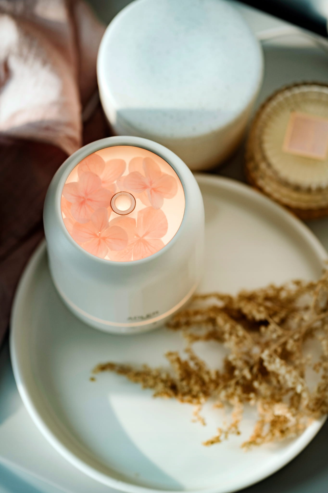 Dyfuzor, może także służyć jako lampka nocna. Dzięki swojemu ciepłem światłu idealnie nada się do wieczornego odpoczynku. Można zmienić barwy światła do 7 poziomów