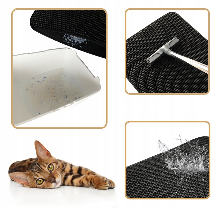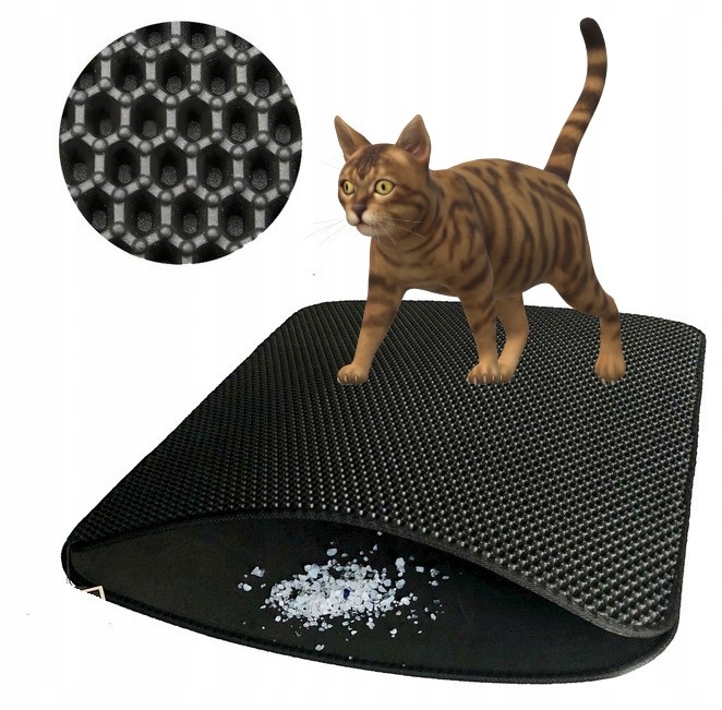 Mata przed kuwety dla kotów posiada wzór otworów o strukturze plastra miodu, zwiększając skuteczność zbierania żwirku oraz czyszczenia łapek kotów.