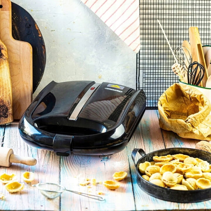 Urządzenie do wypiekania ciasteczek w formie orzeszków napełnianych kremem wedle upodobania słodkim lub wytrawnym. Rozmiar XL pozwala na upieczenie w jednym cyklu aż 24 połówek orzeszków.