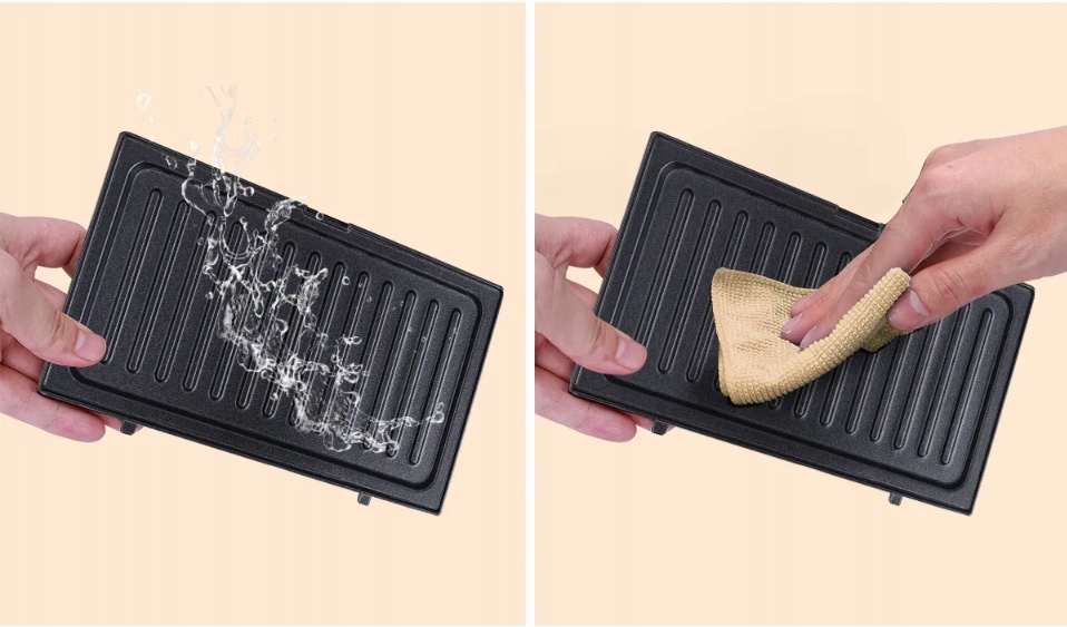 Wnętrze opiekacza jest pokryte nieprzywierającą powłoką, która sprawia, że utrzymanie go w czystości jest bardzo łatwe.