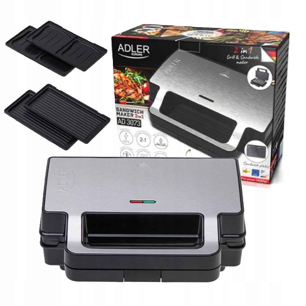 Przygotuj pyszne kanapki i grillowane przysmaki w prosty i wygodny sposób dzięki opiekaczowi do kanapek Adler AD 3073. To wielofunkcyjne urządzenie 2 w 1, wyposażone w dwa typy wymiennych płytek, pozwala na przygotowanie różnorodnych dań - od klasycznych kanapek po smakowite grillowane potrawy. Dzięki solidnej konstrukcji i łatwości użytkowania, Adler AD 3073 stanie się niezastąpionym pomocnikiem w Twojej kuchni.
