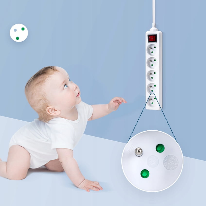 - System blokad mechanicznych chroniących dzieci przed możliwością wsadzenia przedmiotów do gniazda