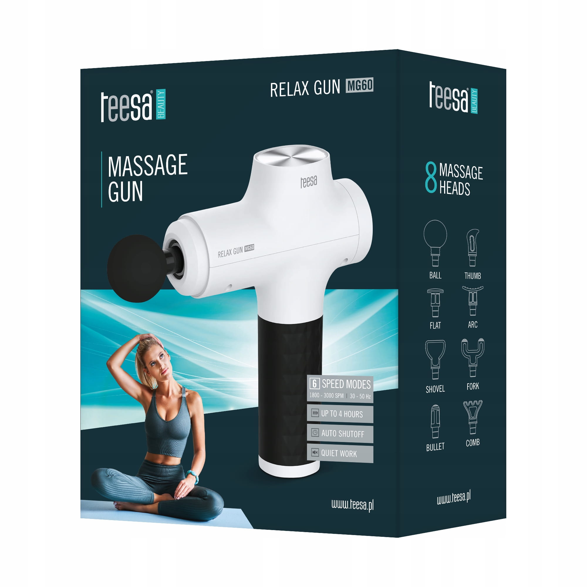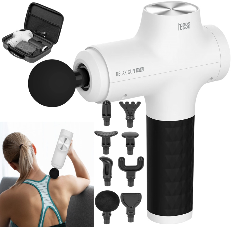 Pistolet do masażu TEESA RELAX GUN MG60, 8 nakładek, biały