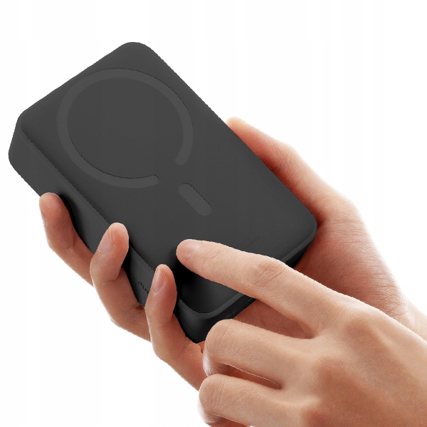 Powerbank został wyposażony w silny system magnetyczny, który stabilnie przytrzymuje urządzenie na tylnej części smartfona. Dzięki temu ładowanie bezprzewodowe jest wygodne, bezpieczne i nie wymaga ciągłego poprawiania położenia telefonu.
