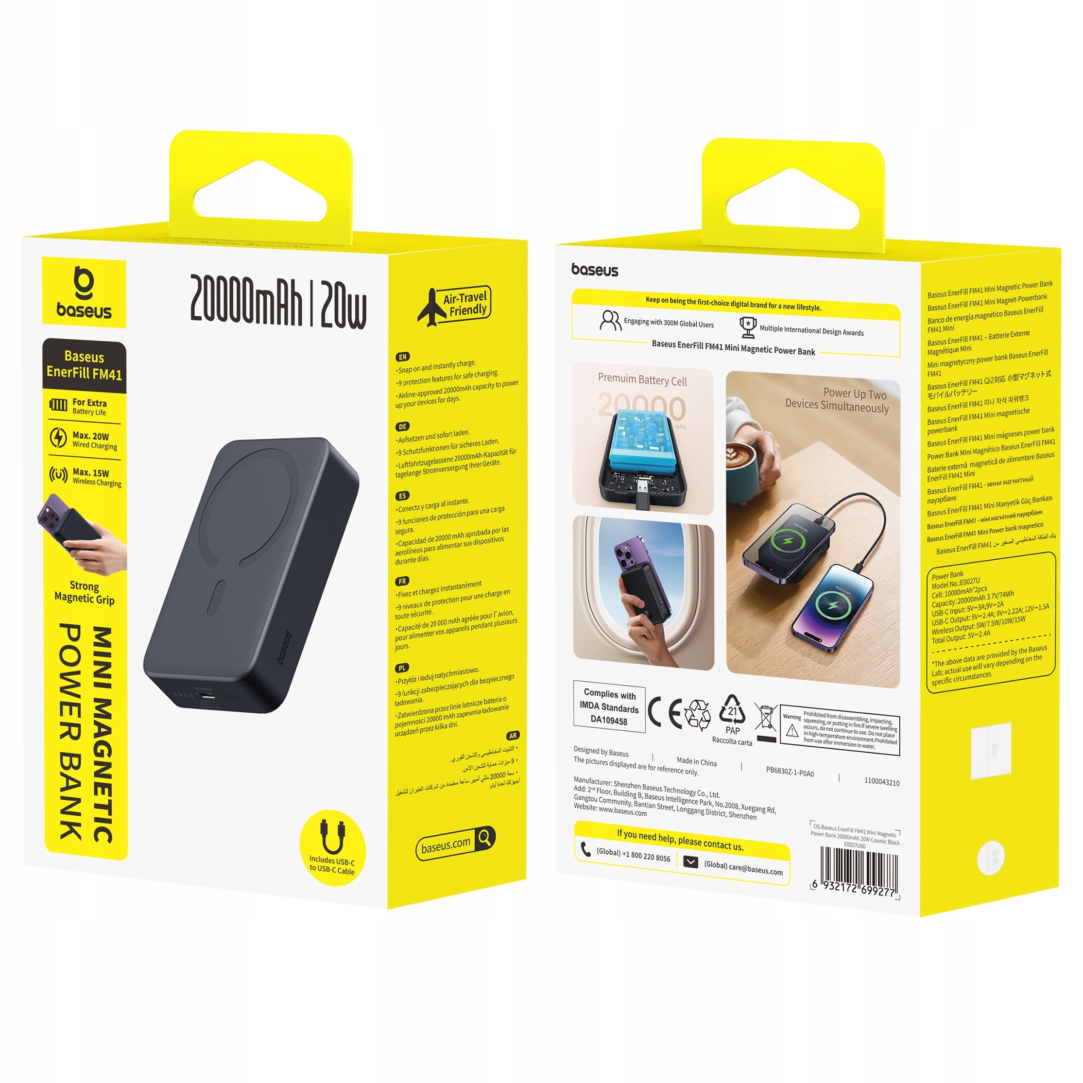 Kompaktowy powerbank o pojemności 20 000 mAh z magnetycznym ładowaniem bezprzewodowym, który pewnie przylega do telefonu i zapewnia stabilne zasilanie w każdej sytuacji. Umożliwia ładowanie bezprzewodowe do 7,5 W oraz przewodowe przez USB-C do 20 W, a także jednoczesne ładowanie dwóch urządzeń.