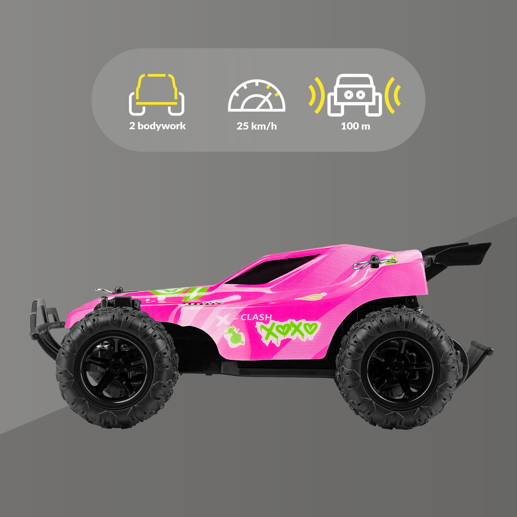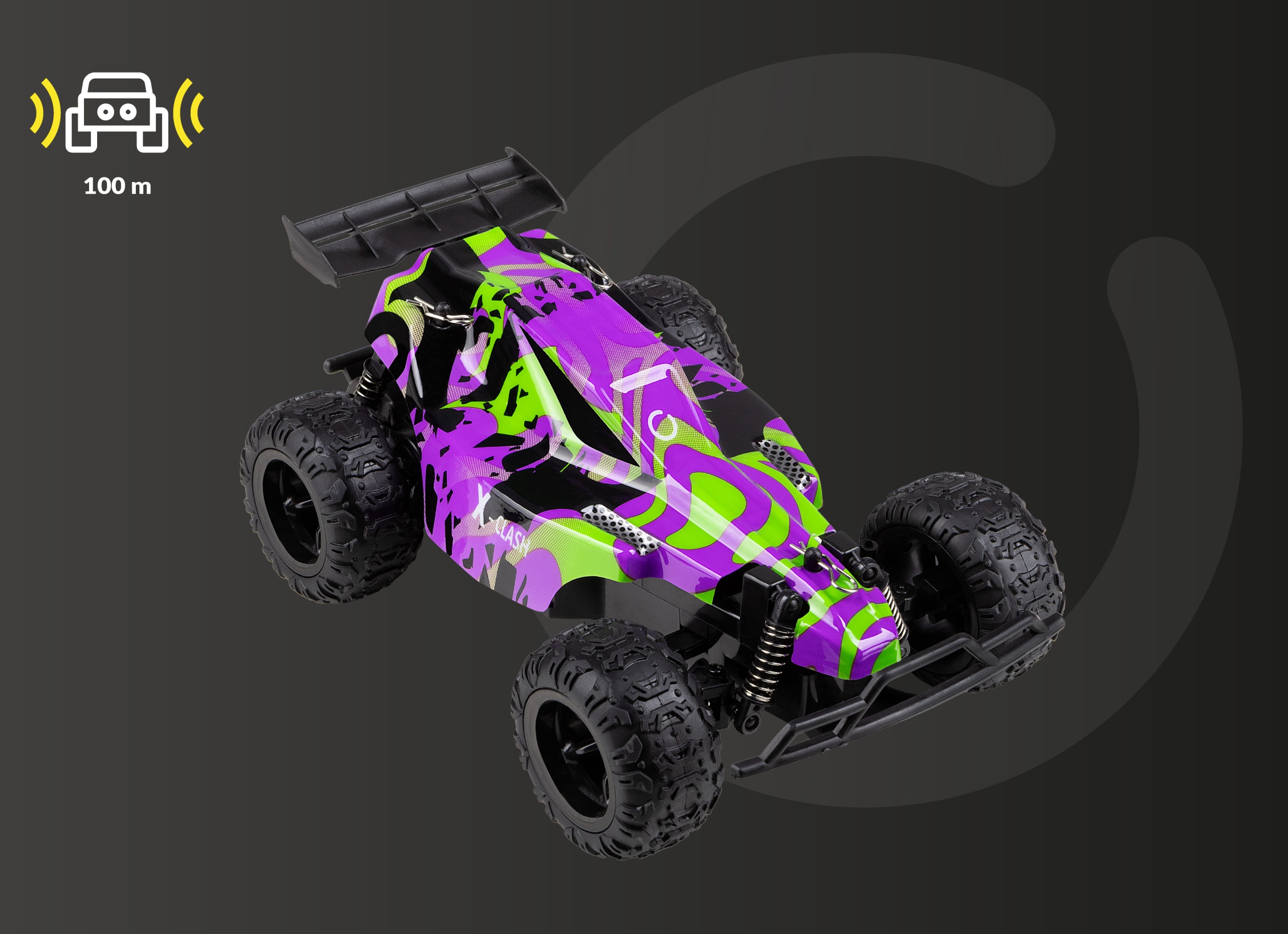 X-Clash to połączenie sportowej sylwetki, kompaktowych rozmiarów i solidnej konstrukcji. Aerodynamiczny design inspirowany wyścigowymi maszynami sprawia, że samochód wygląda efektownie na każdej trasie.