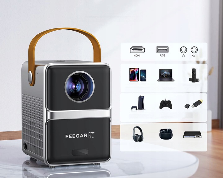 RZUTNIK Mini PROJEKTOR LED PRZENOŚNY Feegar SHOW WiFi 5G Bluetooth HDMI USB