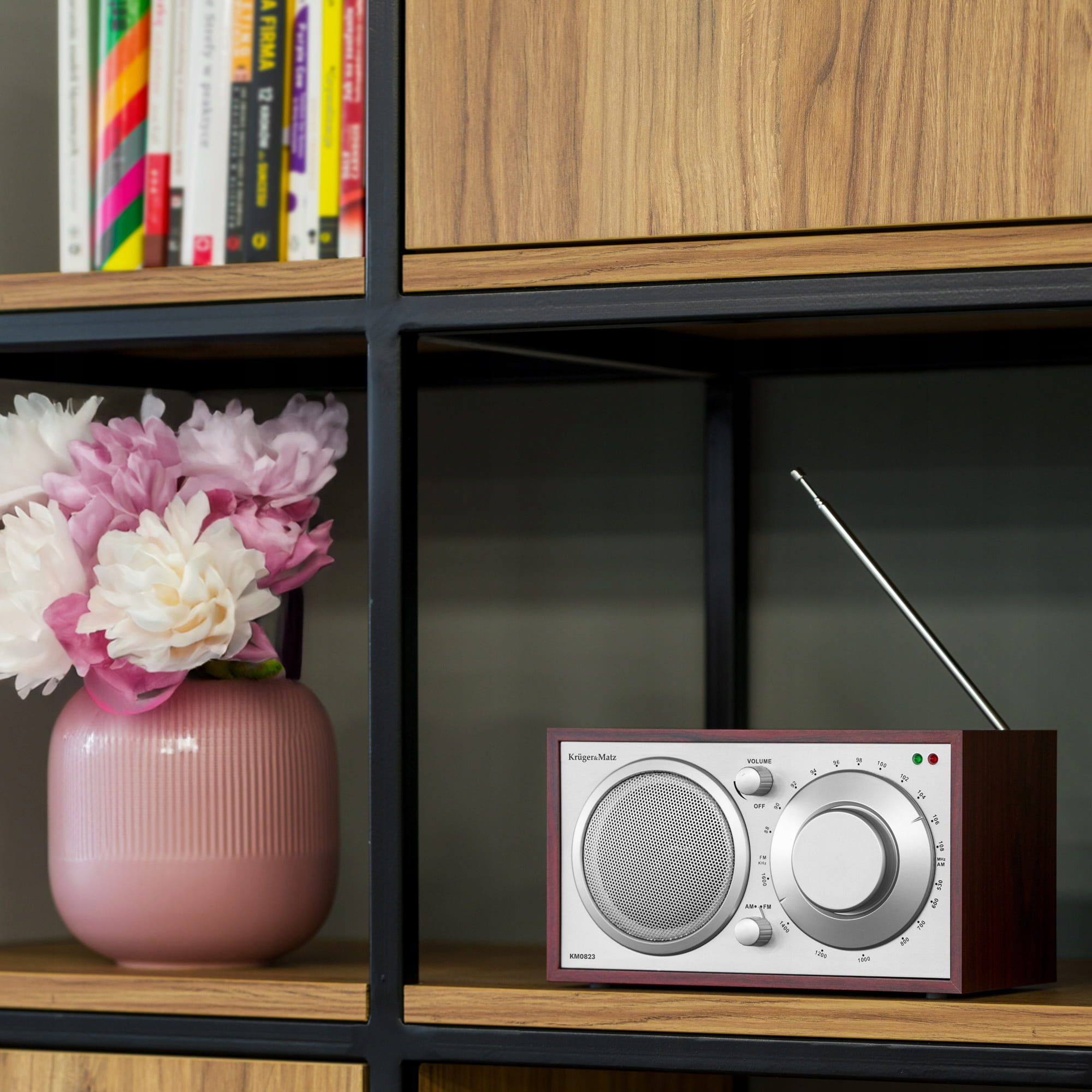 Radio Kruger&Matz KM 823 to eleganckie urządzenie, które umożliwi Ci odbieranie fal AM, jak i FM. Dzięki temu możesz cieszyć się ulubionymi stacjami bez względu na to, gdzie się znajdujesz. Analogowe ustawianie stacji za pomocą precyzyjnego pokrętła pozwala na łatwe dostrojenie do żądanej częstotliwości, zapewniając czysty i klarowny dźwięk Twoich audycji.