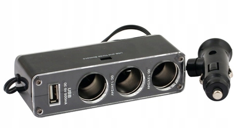 Urządzenie posiada 3 gniazda zapalniczki oraz 1 gniazdo USB, posiada zabezpieczenie przeciwzwarciowe (bezpiecznik).