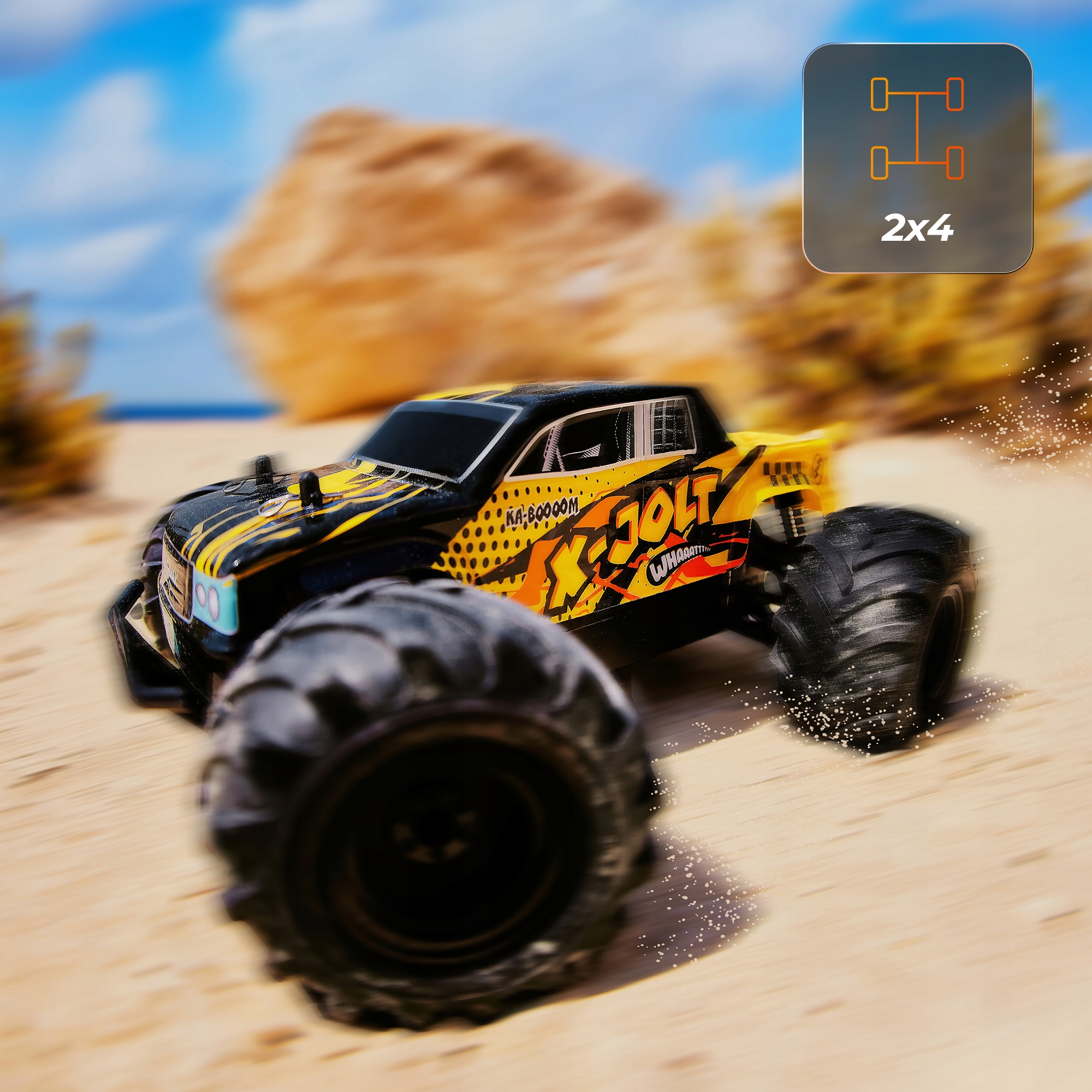 Moc przenoszona na tylne koła to klasyka wyścigowego stylu! X-Jolt z napędem na tył oferuje szybkie przyspieszanie, precyzyjne manewrowanie i widowiskowe poślizgi na suchej nawierzchni.
